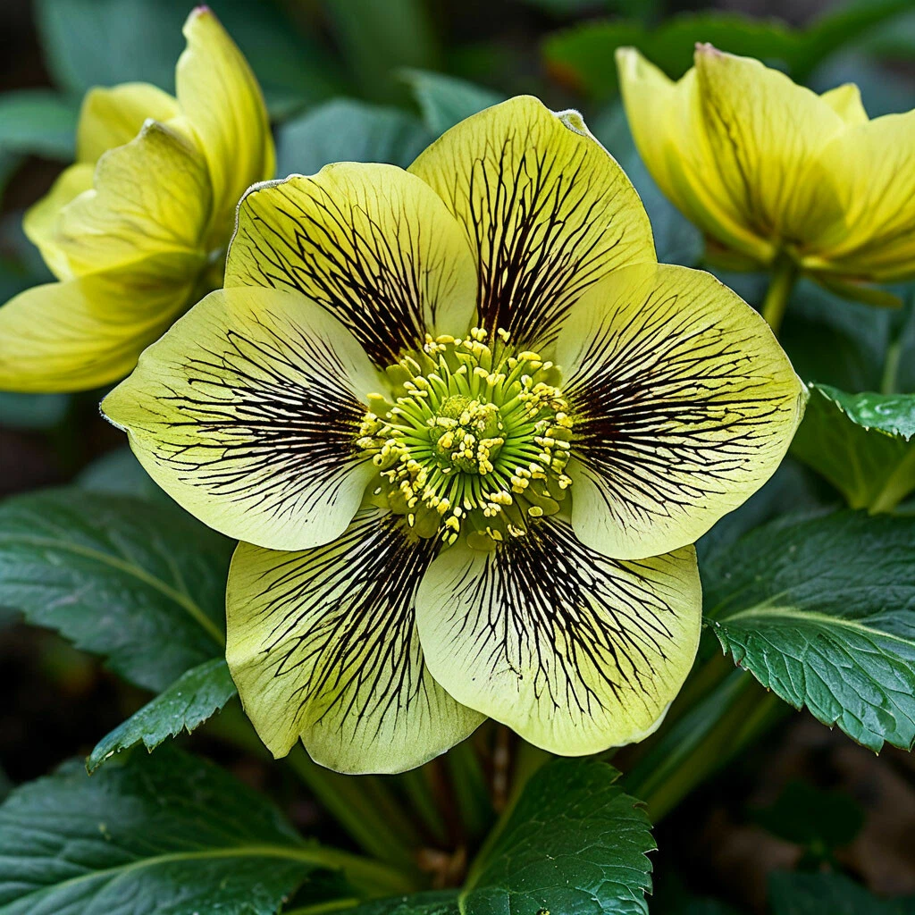 - Жёлтый цвет с чёрными прожилками: главная особенность этого сорта — его нежная и необычная окраска. Цветки морозника “Аква Дримс” имеют нежный жёлтый цвет, создавая эффект тепла и солнечного света.